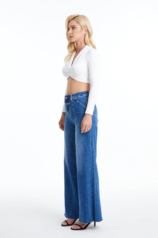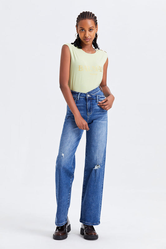 BAYEAS HIGH QUALITY SUPER HIGH RISE CROSS OVER WIDE LEG JEANS - BYW8003