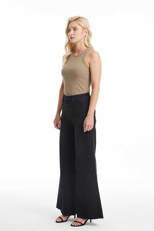 BAYEAS HIGH QUALITY BLACK UTILITY PATCH POCKET WIDE LEG JEAN - BYW8103-B