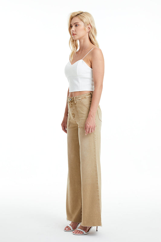 BAYEAS HIGH QUALITY KHAKI UTILITY PATCH POCKET WIDE LEG JEAN - BYW8103-K