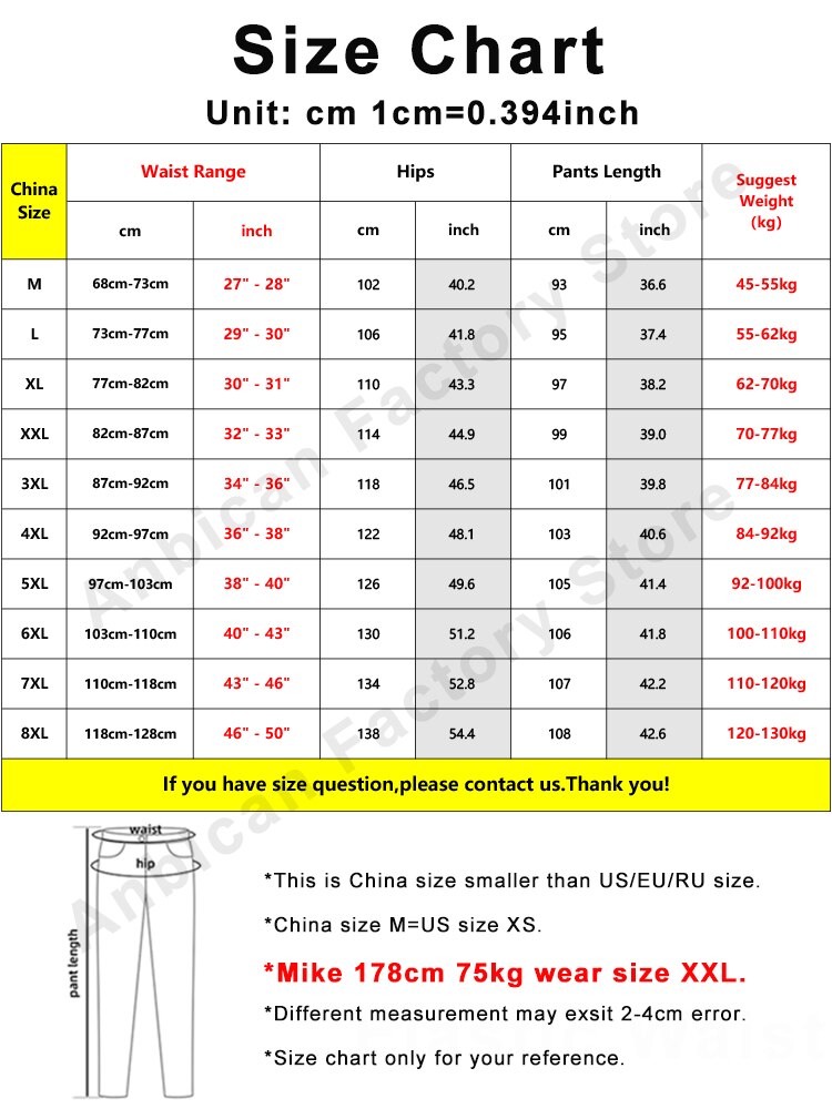 Size: China Size M,L,XL,XXL,3XL,4XL,5XL,6XL,7XL,8XL